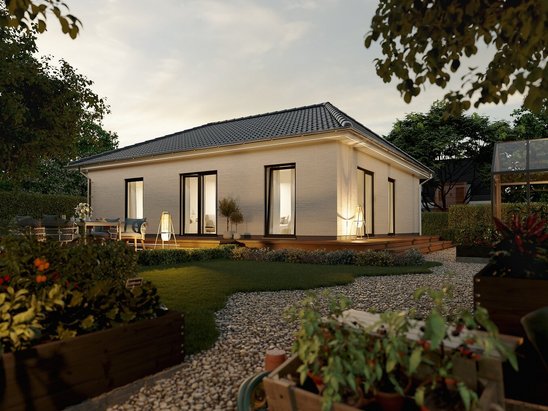 Gemütlich und energiesparend wohnen – der Bungalow 78 bietet clever geplanten Wohnraum auf einer Ebene mit Urlaubsflair. Vielseitig gestaltbar, hell, barrierefrei und nah an der Natur.